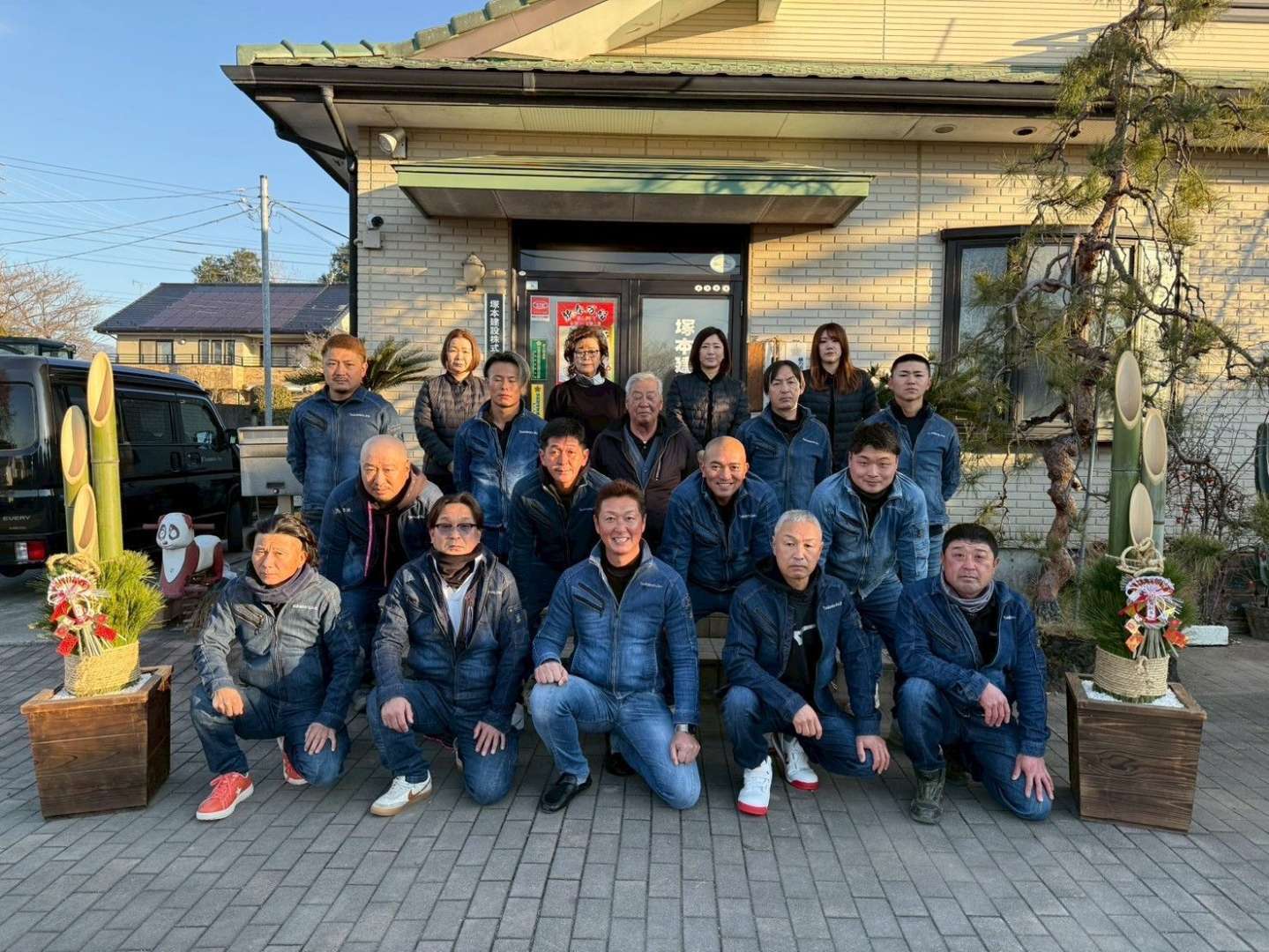仕事始めに、事務所前にて社員一同の集合写真を撮影しました。
